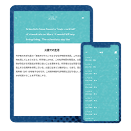スマホやタブレットを活用し、授業でも自習でもお使いいただけるAI英語学習教材です。